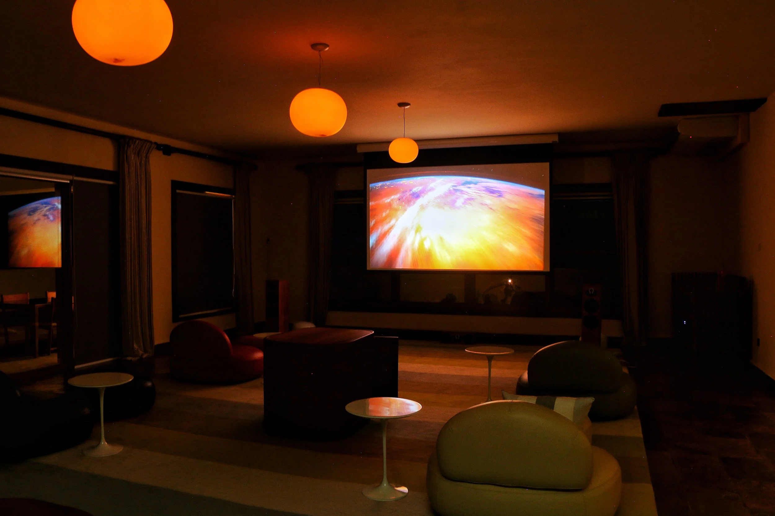 The upper ground floor features a grand double-height entrance hall that opens into a lofty central atrium. An air-conditioned home cinema is equipped with a projector, screen, and sound system for an immersive entertainment experience. The wrap-around sea-view veranda, which is partially open and partially covered, offers both lounging and dining areas with stunning views.